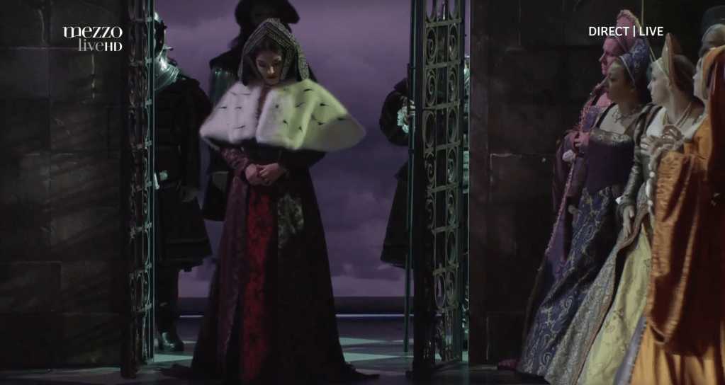Anne’s execution gown, as recreated in the 2019 Royal Opera of Wallonia production of Anna Bolena, starring Olga Peretyatko as Anne.