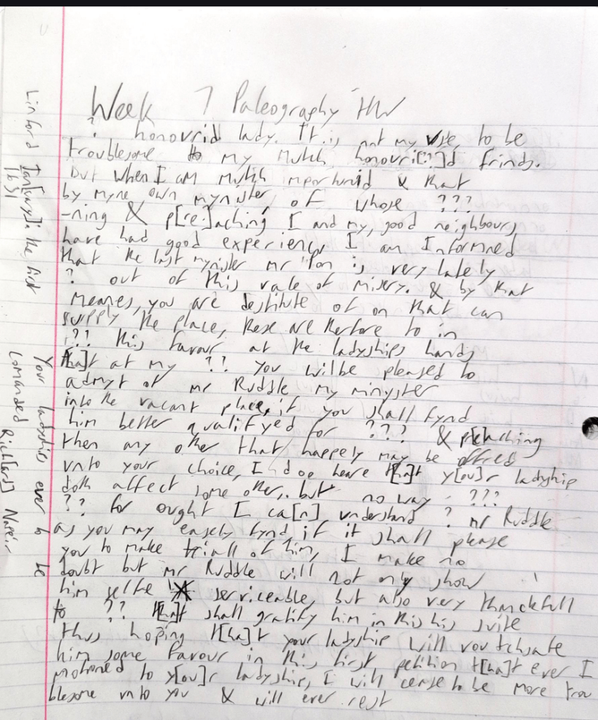 One of the transcriptions of early modern documents I turned in for the paleography class; apologies for my awful handwriting!